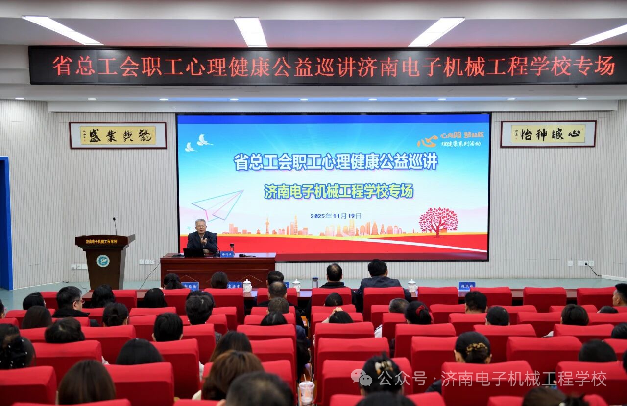 为切实关爱教职工心理健康,提升一线教育工作者的情绪管理与心理调适能力,体现工会组织对教职工群体的深切关怀,11月19日下午,由山东省总工会主办的职工心理健康公益巡讲活动在济南电子机械工程学校成功举办专场心理讲座。校长董洪海主持。
