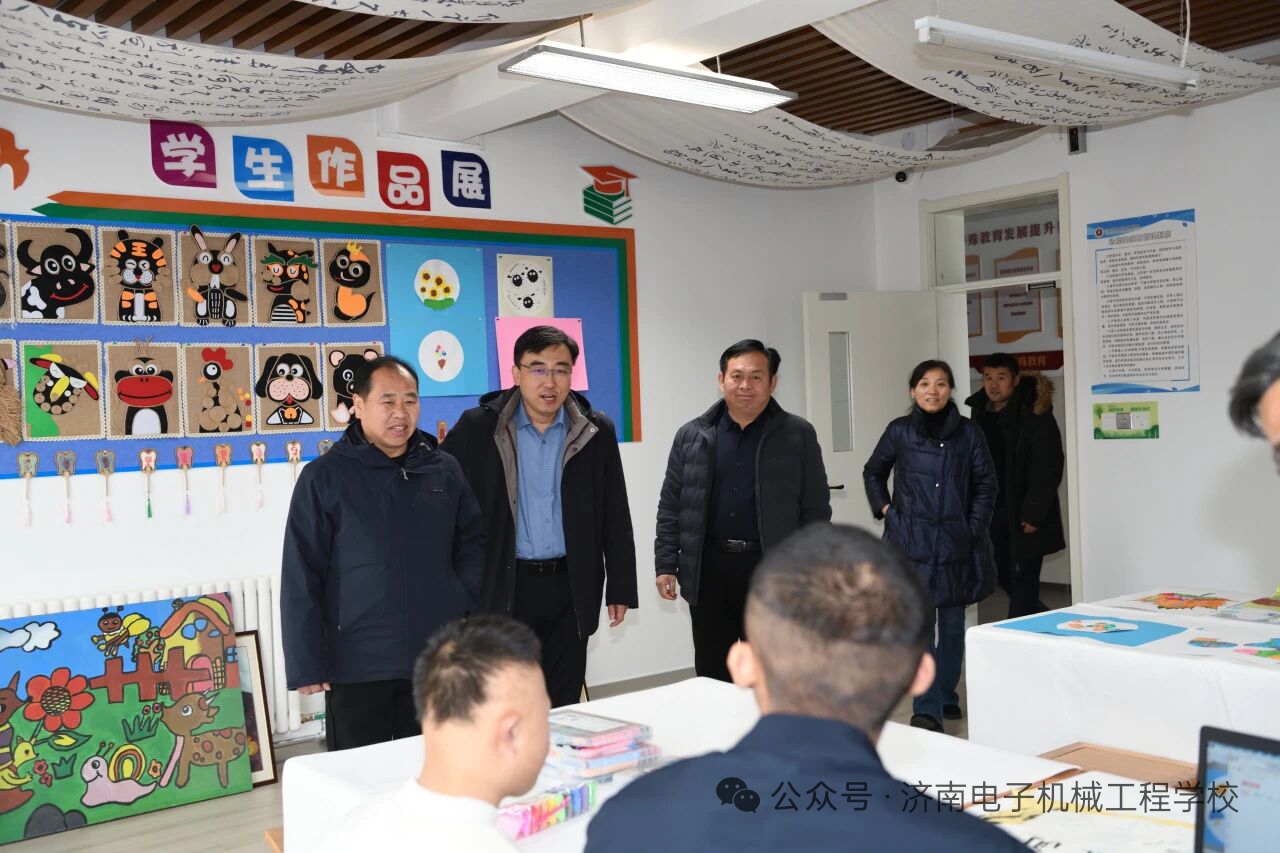 在济南市莱芜特殊教育学校领导班子陪同下,济南电子机械工程学校参会人员走进教室,将精心准备的礼物送到孩子们手中,轻声细语地与他们交流互动。随后,大家参观了名师工作室、甲骨文工作室、葫芦工作坊、心理健康指导中心,对学校开展的特色活动连连称赞。