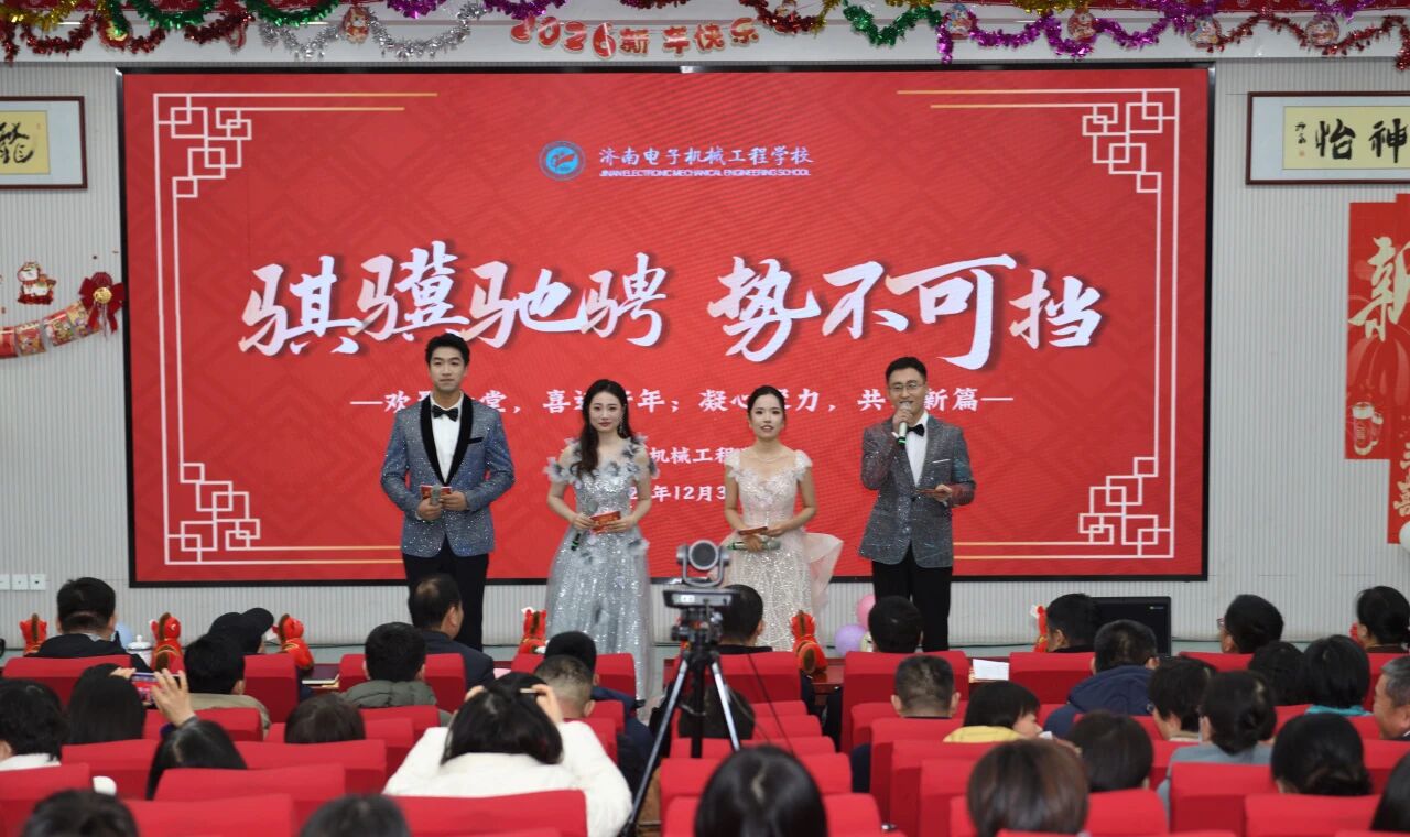 12月31日下午2时,济南电子机械工程学校2026年教职工元旦联欢会如期举行。全校师生欢聚一堂,以丰富多彩的文艺节目共辞旧岁,喜迎新年。
