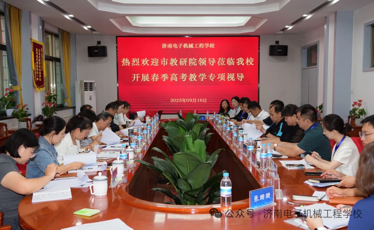 2025年9月16日,济南市教育教学研究院纪委书记黄侦宇一行9人莅临济南电子机械工程学校开展职教高考教学专项视导工作。本次视导以“聚焦课堂、精准诊断”为核心,通过观议课、学科座谈等环节,诊断课堂问题,提出了针对性改进建议,为学校课堂教学的优化提供了关键指导。学校校长董洪海和党委书记高建雯带领班子成员和相关部门负责人参加活动。