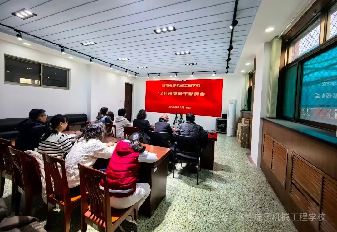 12月16日下午,济南电子机械工程学校党群工作部组织召开12月份党务工作例会。学校党群工作部主任雷怡然,各支部支部书记、委员、党小组长参加会议。会议由雷怡然主持。